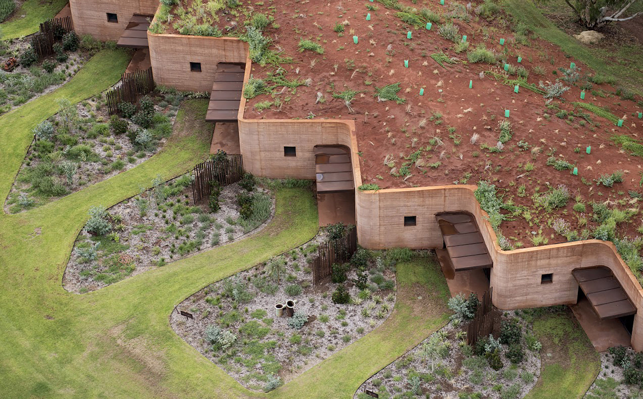 It is worth noting when rammed earth gets mentioned in major newspapers, as just happened in the Australian Financial Review. And it well deserved recognition for Luigi Roselli‘s great wall of WA (constructed by Murchison Rammed Earth) described as “one of the most compelling residential projects of our times – a series of humble bungalows that has taken the world by dust storm.”