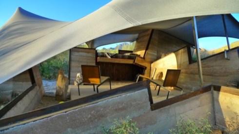 Check out this design. Quite interesting use of thermal mass. The rammed earth fireplace has a bed on top and is covered with a a tent like roof structure. It is the work of Simón De Agüero, a grad-student at the Frank Lloyd Wright School of Architecture. Check out his site here.